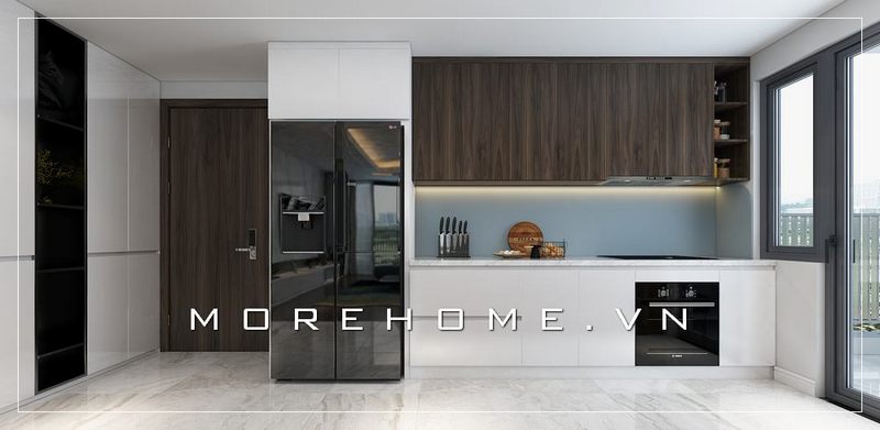 Một gợi ý thú vị là áp dụng phong cách hiện đại với các tông màu sáng và vật liệu kính. Điều này không chỉ tạo cảm giác rộng rãi mà còn mang đến sự tinh tế và sang trọng cho không gian bếp. Bên cạnh đó, việc sử dụng các kệ mở thay vì tủ kín cũng giúp giảm bớt cảm giác chật chội, đồng thời tạo cơ hội để bạn trưng bày những món đồ trang trí xinh xắn hoặc gia vị đẹp mắt.