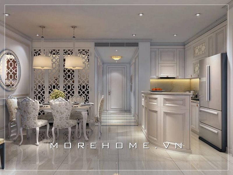Ngoài ra, việc chọn màu sắc sáng và sử dụng gương trong thiết kế có thể tạo cảm giác rộng rãi hơn cho không gian bếp. Màu trắng hoặc các tông màu pastel nhẹ nhàng không chỉ mang lại vẻ đẹp hiện đại mà còn phản chiếu ánh sáng, làm cho căn phòng trở nên thông thoáng hơn. Thêm vào đó, việc bố trí ánh sáng phù hợp với đèn LED âm trần hay đèn pendant sẽ tạo điểm nhấn hấp dẫn và ấm cúng cho căn bếp nhỏ của bạn.
